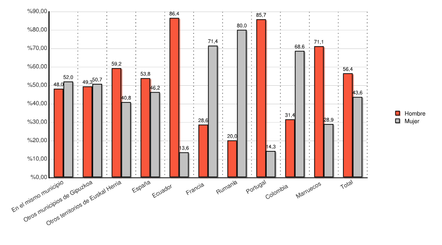 | Otros territorios de Euskal Herria | 45 | 59,2 | 31 | 40,8 | 76 | 100,0 |