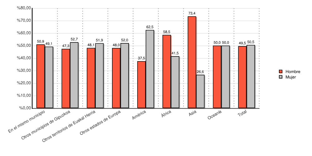 1.2.2.1 Grafikoa: Jatorria Kontinente eta Sexuaren arabera