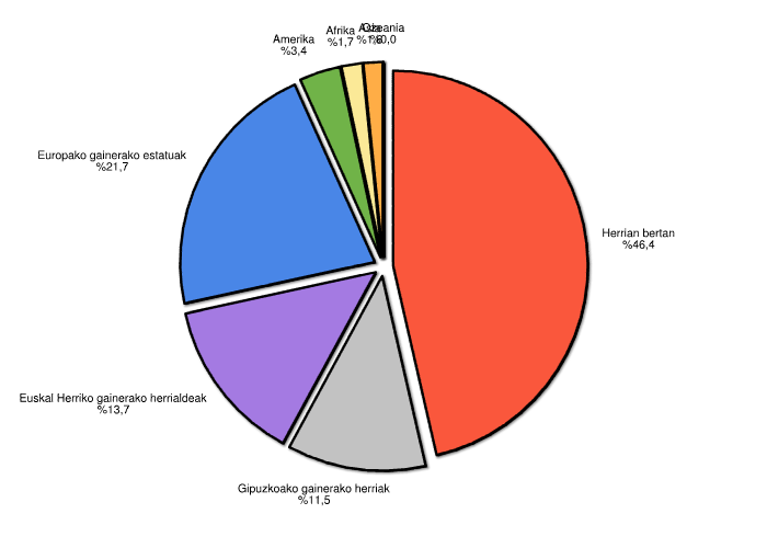 | Euskal Herriko gainerako herrialdeak | 3.021 | 13,7 |