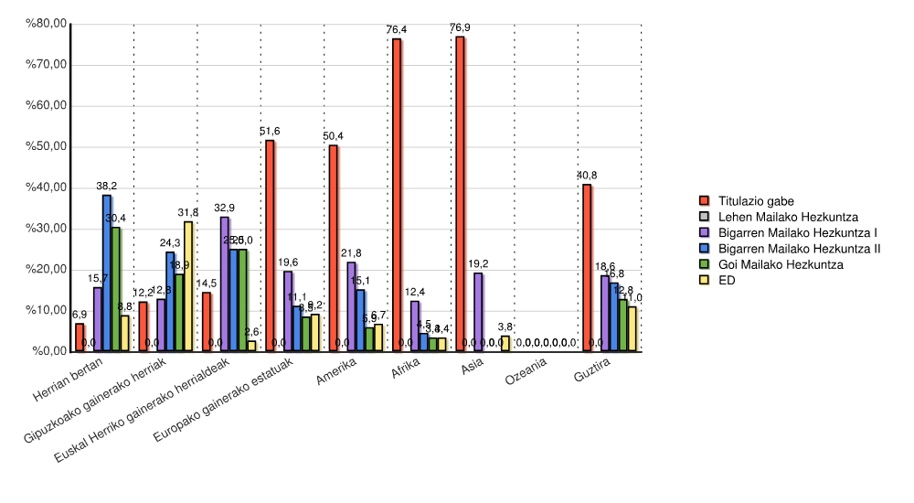 3.2.2.5 Grafikoa: Jatorria Kontinente eta Ikasketa Mailaren arabera