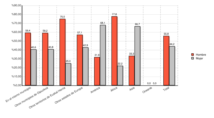 | Otros territorios de Euskal Herria | 6 | 75,0 | 2 | 25,0 | 8 | 100,0 |