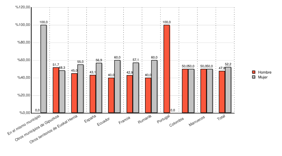 | Otros municipios de Gipuzkoa | 167 | 51,7 | 156 | 48,3 | 323 | 100,0 |