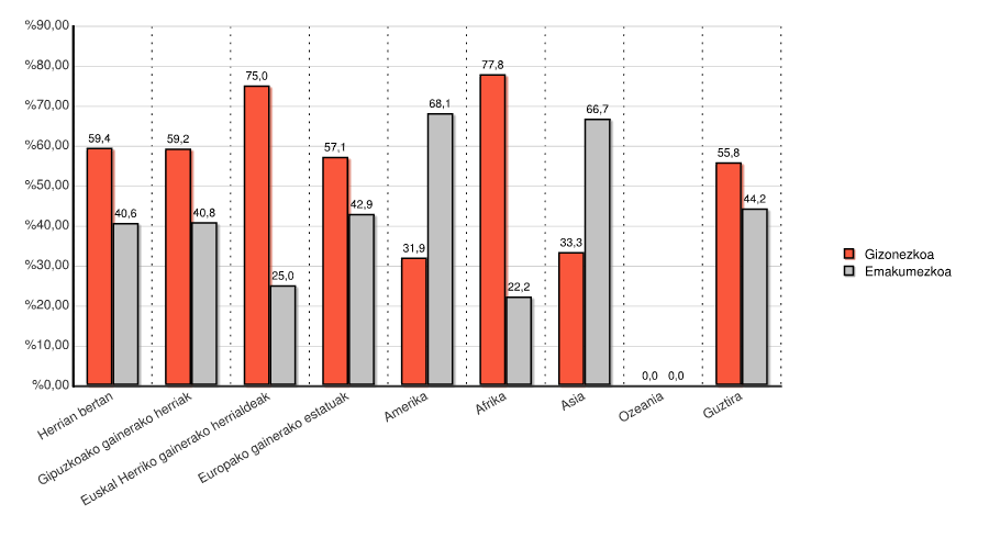 | Euskal Herriko gainerako herrialdeak | 6 | 75,0 | 2 | 25,0 | 8 | 100,0 |