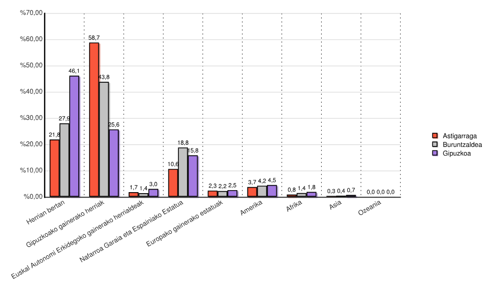 Jatorri aniztasuna 2019 / Jaiolekua ingurunearekin alderatuta / Kontinenteen arabera / Herria eta bere ingurunea