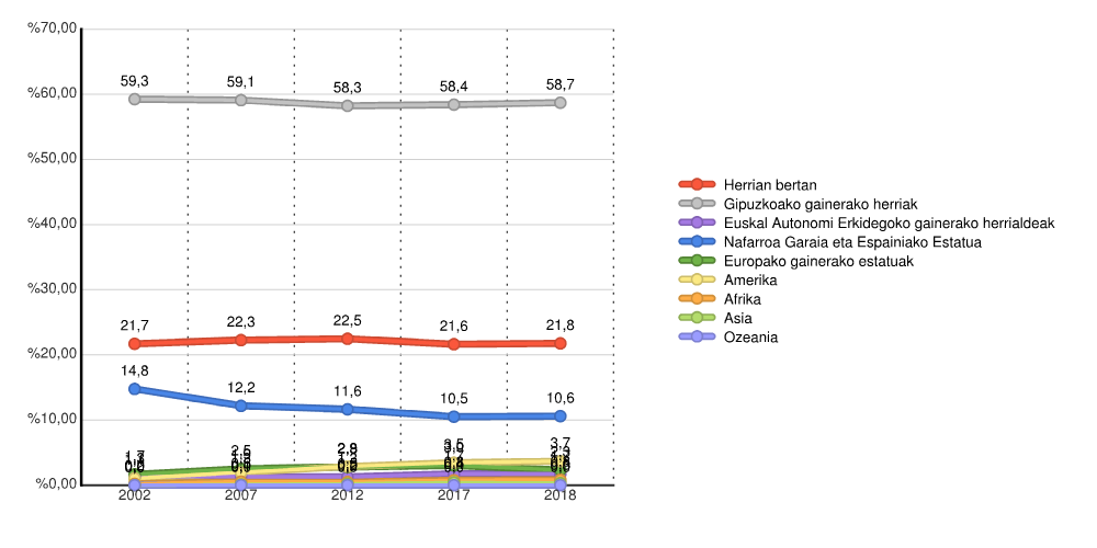 | Herrian bertan | 824 | 21,7 | 977 | 22,3 | 1.124 | 22,5 | 1.315 | 21,6 | 1.366 | 21,8 |
