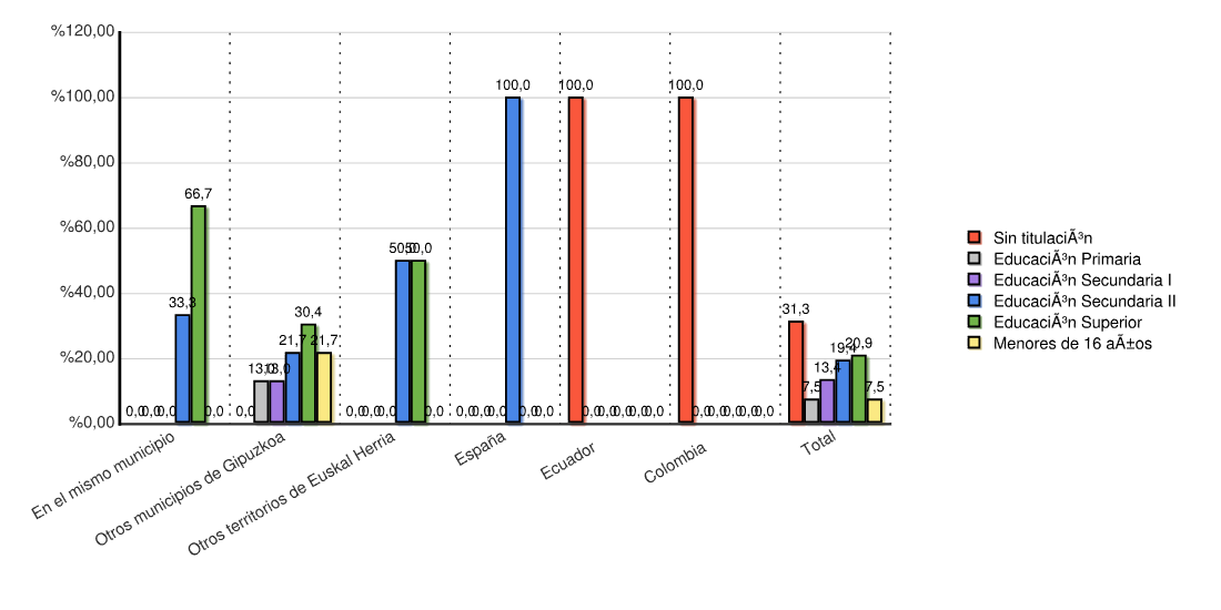 | En el mismo municipio | 0 | 0,0 | 0 | 0,0 | 0 | 0,0 | 2 | 33,3 | 4 | 66,7 | 0 | 0,0 | 6 | 100,0 |
