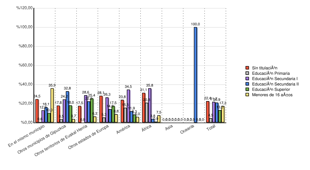 | Otros municipios de Gipuzkoa | 77 | 17,8 | 15 | 3,5 | 105 | 24,2 | 142 | 32,8 | 78 | 18,0 | 16 | 3,7 | 433 | 100,0 |
