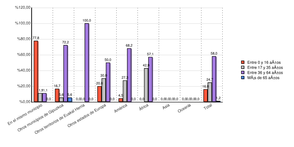 | Otros municipios de Gipuzkoa | 3 | 16,7 | 1 | 5,6 | 13 | 72,2 | 1 | 5,6 | 18 | 100,0 |