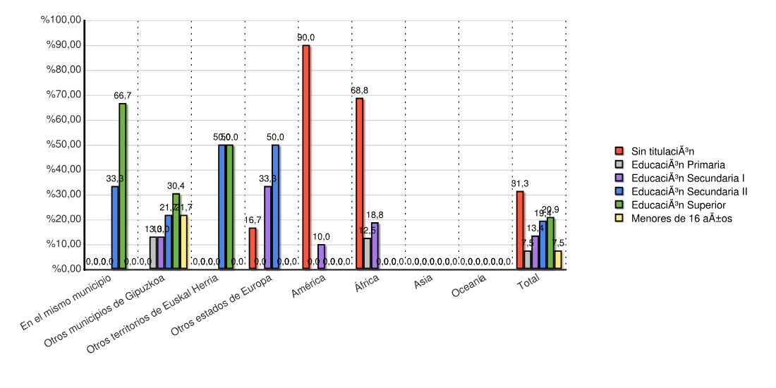 | Continente | Sin titulación | Educación Primaria | Educación Secundaria I | Educación Secundaria II | Educación Superior | Menores de 16 años | Total | |||||||