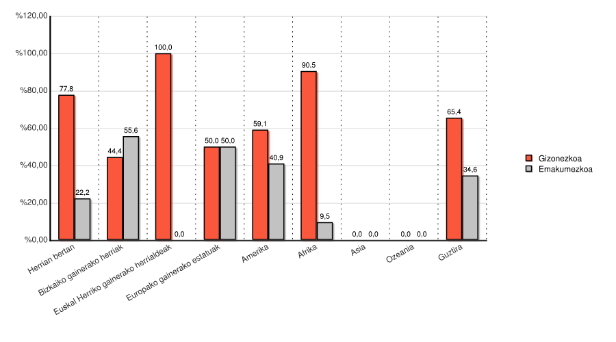 | Euskal Herriko gainerako herrialdeak | 1 | 100,0 | 0 | 0,0 | 1 | 100,0 |
