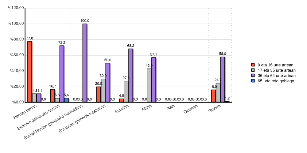 | Bizkaiko gainerako herriak | 0 | 0,0 | 0 | 0,0 | 0 | 0,0 | 0 | 0,0 | 5 | 27,8 | 3 | 16,7 | 10 | 55,6 | 0 | 0,0 | 18 | 100,0 |