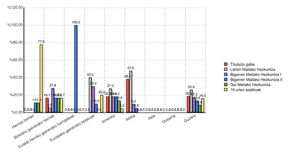 | Euskal Herriko gainerako herrialdeak | 0 | 0,0 | 0 | 0,0 | 0 | 0,0 | 1 | 100,0 | 0 | 0,0 | 0 | 0,0 | 1 | 100,0 |