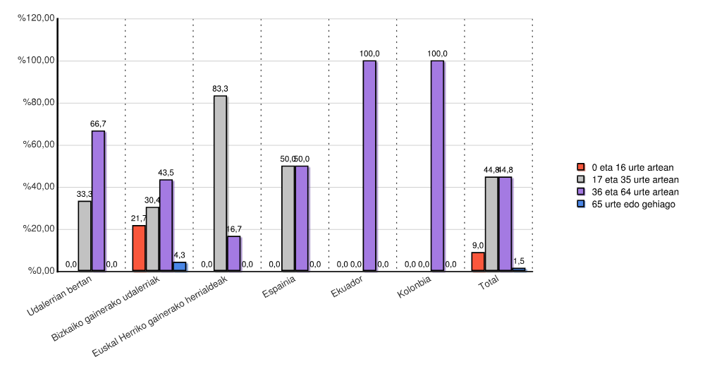 | Udalerrian bertan | 0 | 0,0 | 2 | 33,3 | 4 | 66,7 | 0 | 0,0 | 6 | 100,0 |