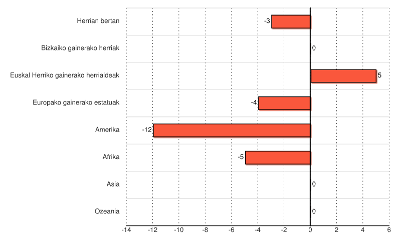 Migrazio saldoa 2020 / Saldoa kontinenteen arabera