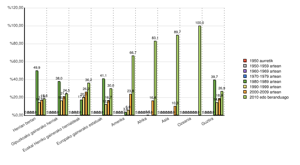| Euskal Herriko gainerako herrialdeak | 657 | 12,4 |