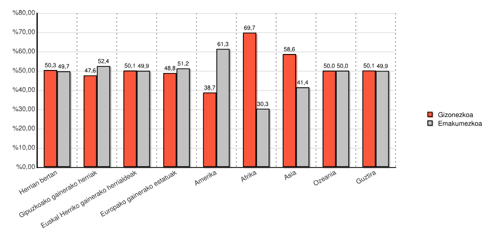 1.2.2.1 Grafikoa: Jatorria Kontinente eta Sexuaren arabera