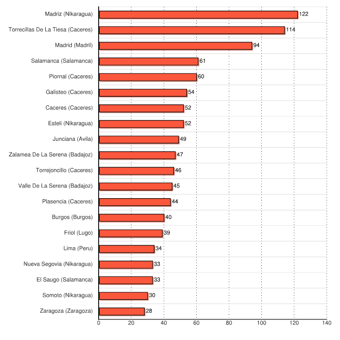 | Somoto (Nikaragua) | 30 |