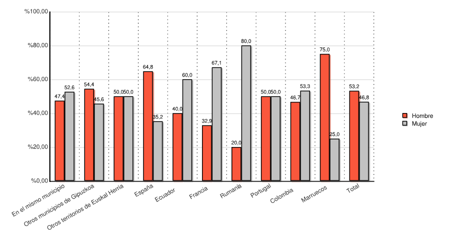 | Otros municipios de Gipuzkoa | 149 | 54,4 | 125 | 45,6 | 274 | 100,0 |