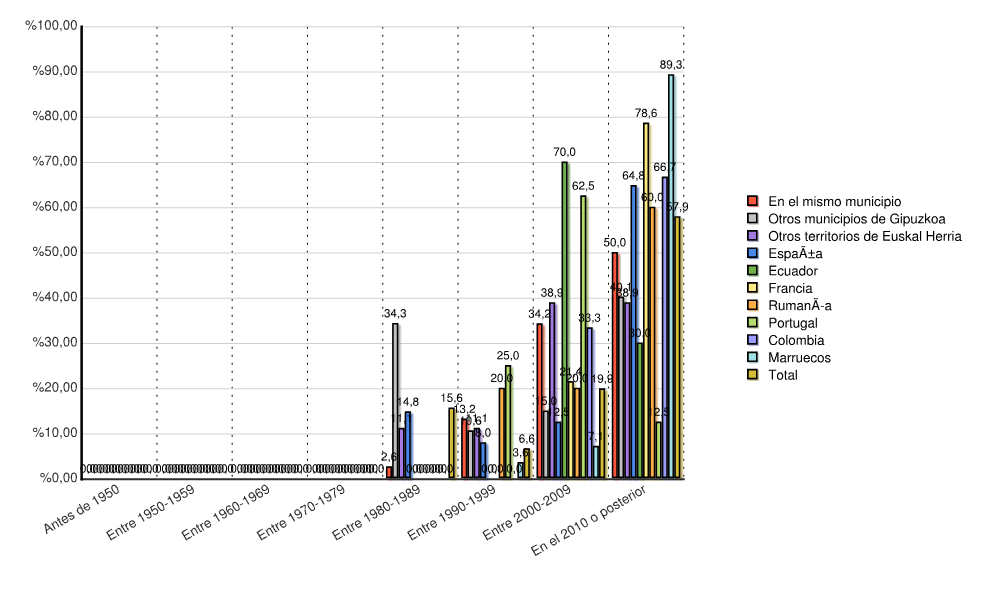 | Otros municipios de Gipuzkoa | 0 | 0,0 | 0 | 0,0 | 0 | 0,0 | 0 | 0,0 | 94 | 34,3 | 29 | 10,6 | 41 | 15,0 | 110 | 40,1 | 274 | 100,0 |