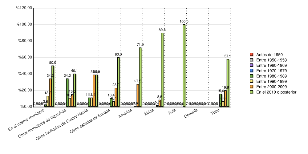 3.2.2.4 Grafikoa: Jatorria Kontinente eta Erroldatze urtearen arabera