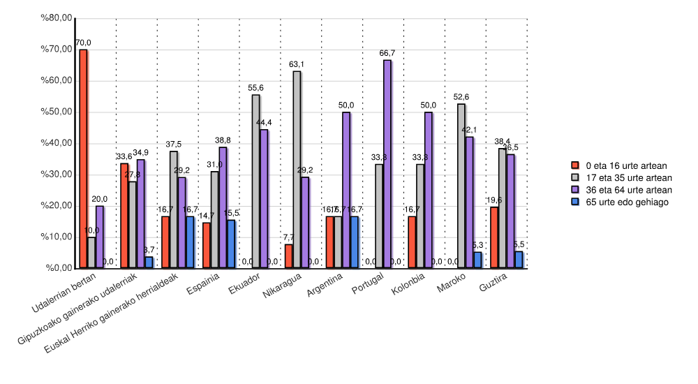 | Udalerrian bertan | 7 | 70,0 | 1 | 10,0 | 2 | 20,0 | 0 | 0,0 | 10 | 100,0 |
