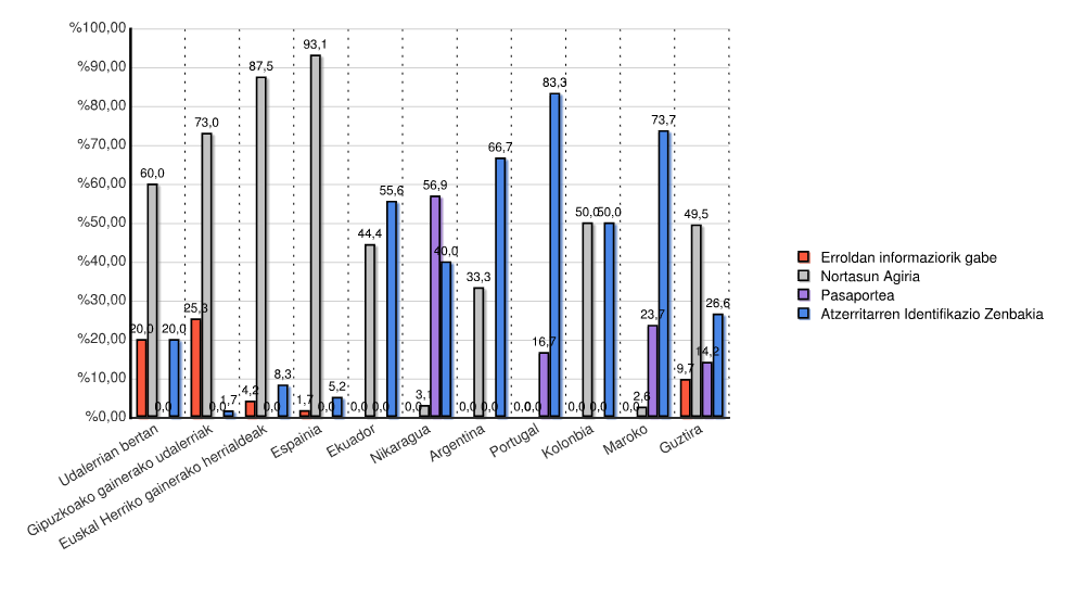 | Estatua | Erroldan informaziorik gabe | Nortasun Agiria | Pasaportea | Atzerritarren Identifikazio Zenbakia | Guztira | |||||
