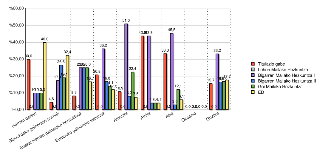 4.2.2.5 Grafikoa: Jatorria Kontinente eta Ikasketa Mailaren arabera