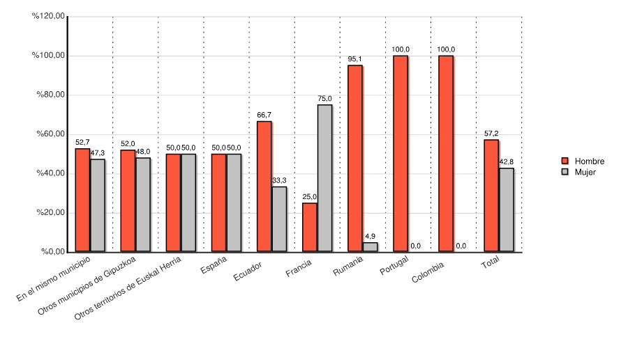 | Otros municipios de Gipuzkoa | 13 | 52,0 | 12 | 48,0 | 25 | 100,0 |