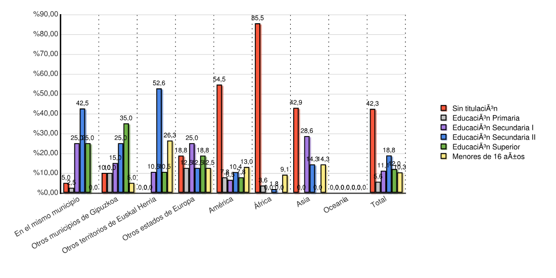 | Otros territorios de Euskal Herria | 0 | 0,0 | 0 | 0,0 | 2 | 10,5 | 10 | 52,6 | 2 | 10,5 | 5 | 26,3 | 19 | 100,0 |