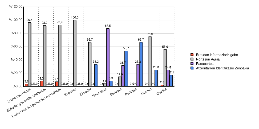 | Estatua | Erroldan informaziorik gabe | Nortasun Agiria | Pasaportea | Atzerritarren Identifikazio Zenbakia | Guztira | |||||
