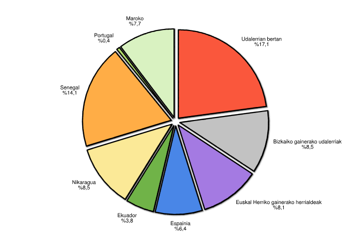 | Euskal Herriko gainerako herrialdeak | 19 | 8,1 |