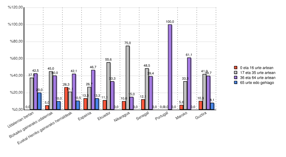 | Estatua | Guztira | 0 eta 16 urte artean | 17 eta 35 urte artean | 36 eta 64 urte artean | 65 urte edo gehiago | |||||