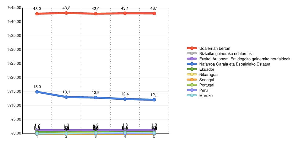 | Udalerrian bertan | 2.458 | 43,0 | 2.633 | 43,2 | 2.651 | 43,0 | 2.656 | 43,1 | 2.656 | 43,1 |