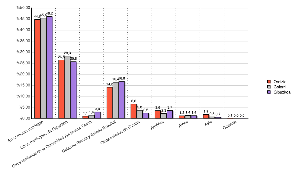 | Eskualdea | En el mismo municipio | Otros municipios de Gipuzkoa | Otros territorios de la Comunidad Autonoma Vasca | Nafarroa Garaia y Estado Español | Rumanía | Portugal | Marruecos | Ecuador | Txile | Colombia | Total | |||||||||||