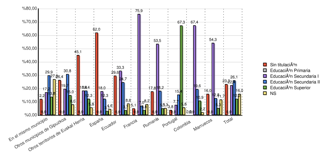 | Otros territorios de Euskal Herria | 17 | 6,1 | 23 | 8,3 | 93 | 33,6 | 144 | 52,0 | 277 | 100,0 |