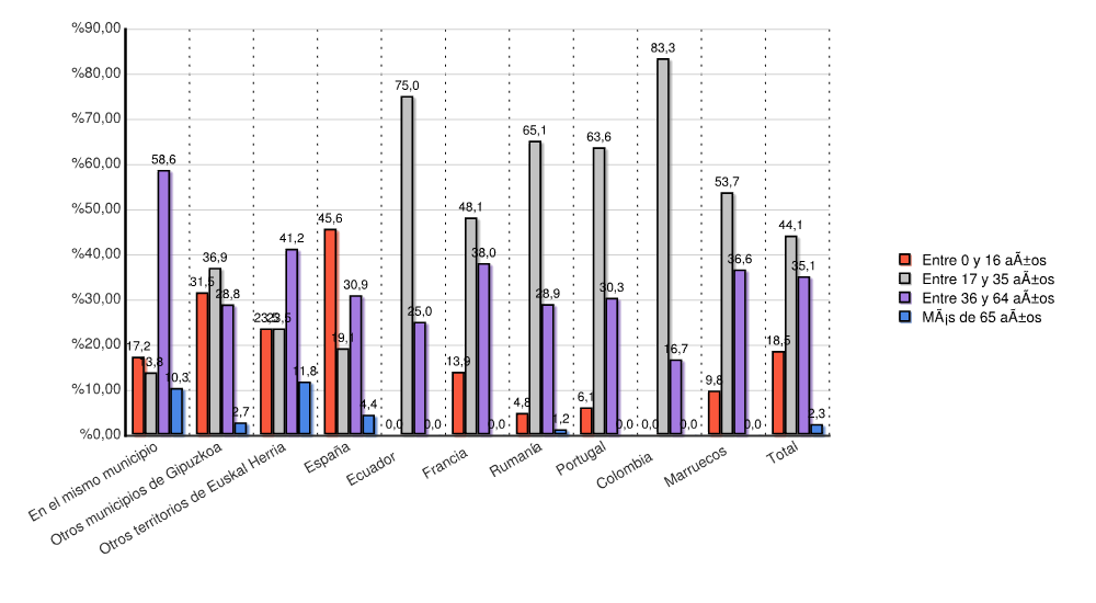 | Otros municipios de Gipuzkoa | 35 | 31,5 | 41 | 36,9 | 32 | 28,8 | 3 | 2,7 | 111 | 100,0 |