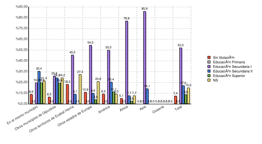 3.2.2.5 Grafikoa: Jatorria Kontinente eta Ikasketa Mailaren arabera