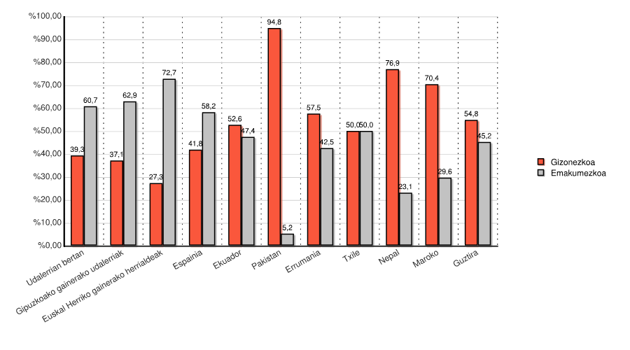 | Guztira | 216 | 54,8 | 178 | 45,2 | 394 | 100,0 |