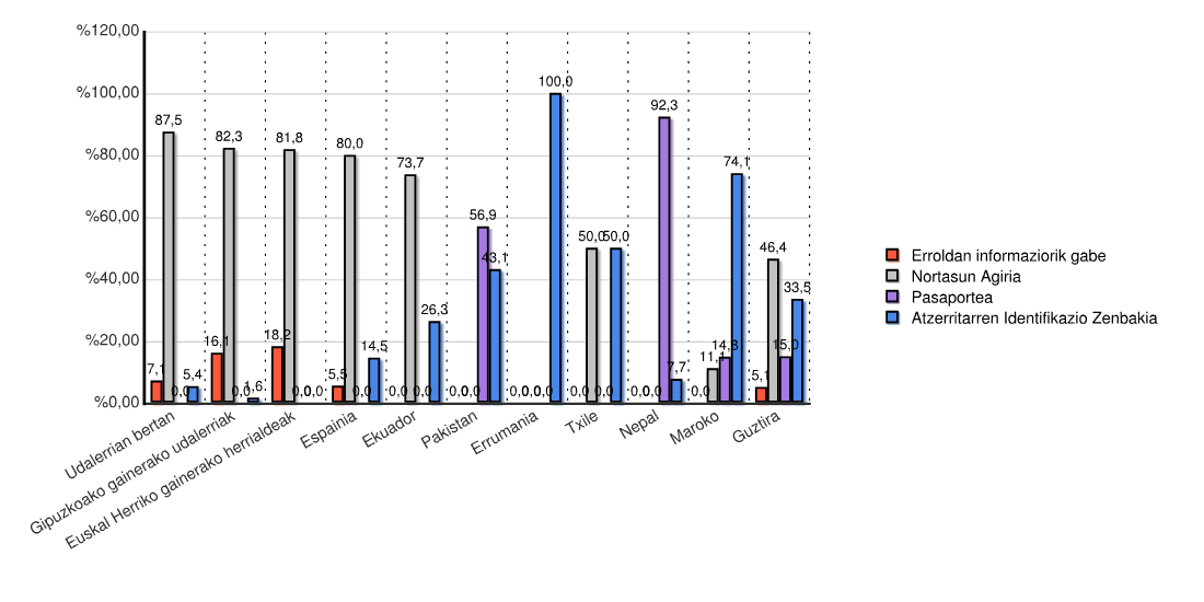 | Estatua | Erroldan informaziorik gabe | Nortasun Agiria | Pasaportea | Atzerritarren Identifikazio Zenbakia | Guztira | |||||