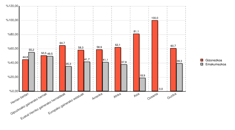 | Gipuzkoako gainerako herriak | 56 | 50,5 | 55 | 49,5 | 111 | 100,0 |