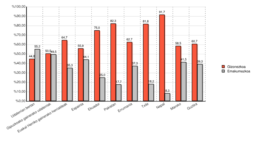 | Euskal Herriko gainerako herrialdeak | 11 | 64,7 | 6 | 35,3 | 17 | 100,0 |