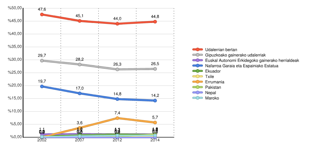 | Udalerrian bertan | 4.291 | 47,6 | 4.210 | 45,1 | 4.323 | 44,0 | 4.389 | 44,8 |