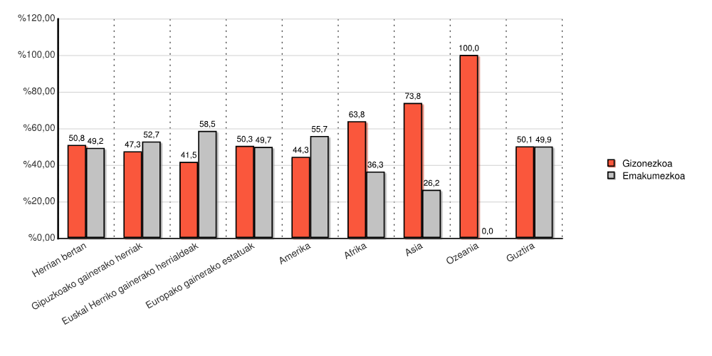 1.2.2.1 Grafikoa: Jatorria Kontinente eta Sexuaren arabera