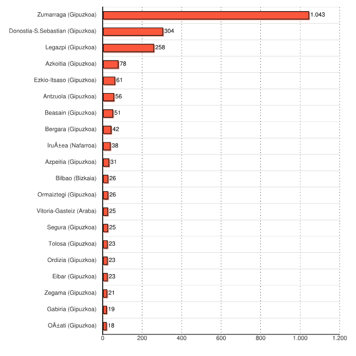 | Zumarraga (Gipuzkoa) | 1.043 |