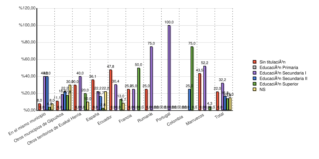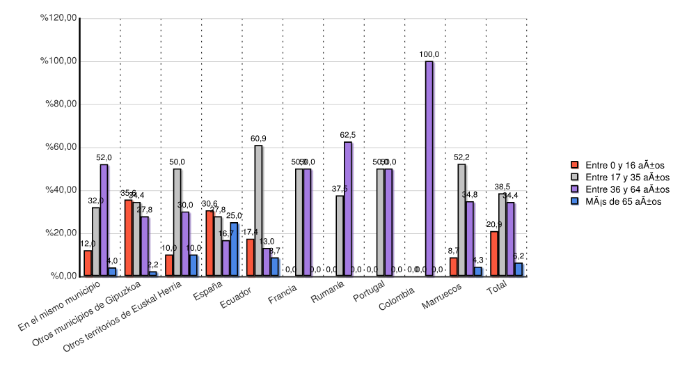| Otros territorios de Euskal Herria | 1 | 10,0 | 9 | 90,0 | 0 | 0,0 | 0 | 0,0 | 10 | 100,0 |