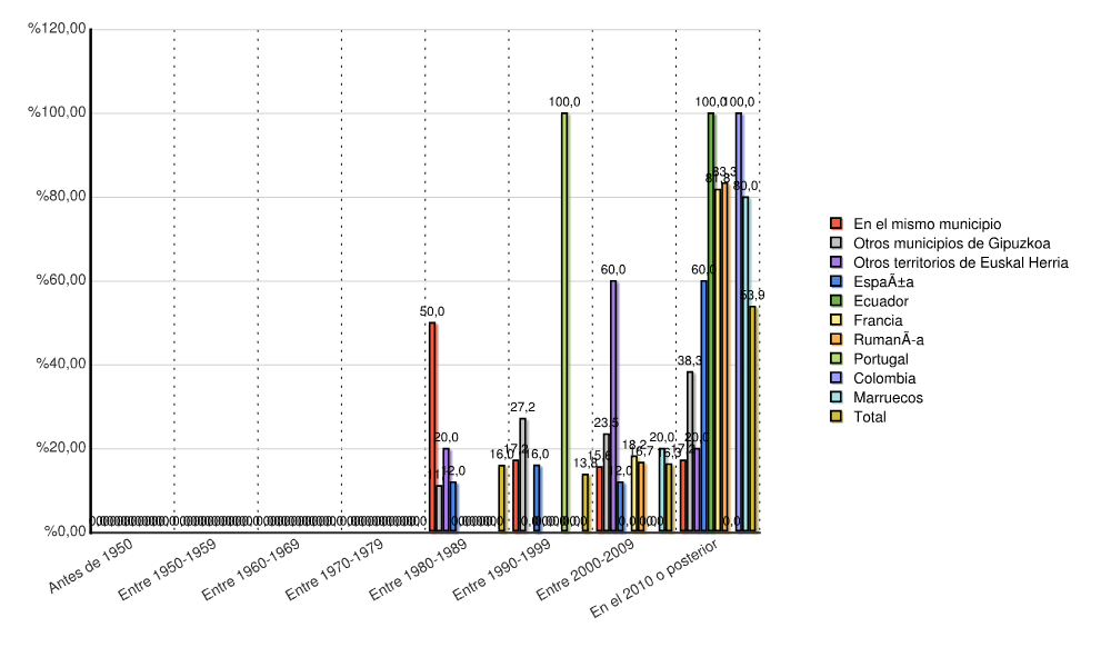 • En algunos casos, se han comenzado a recavar los datos referentes al año de empadronamiento a partir de 1980. Por consiguiente, es posible que los datos de las personas que llegaron antes de 1980 se recojan en este año.