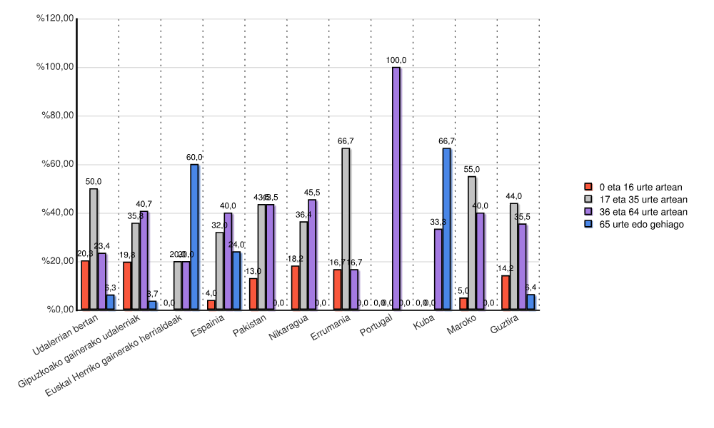 Estatua0 eta 16 urte artean17 eta 35 urte artean36 eta 64 urte artean65 urte edo gehiagoGuztira