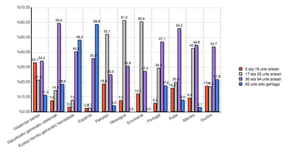 | Estatua | 0 eta 16 urte artean | 17 eta 35 urte artean | 36 eta 64 urte artean | 65 urte edo gehiago | Guztira | |||||