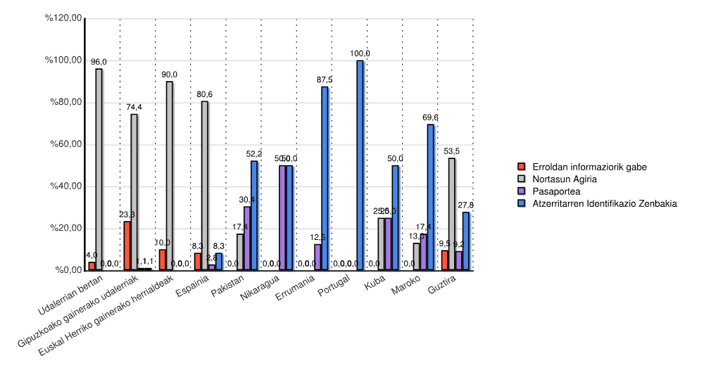 | Estatua | Erroldan informaziorik gabe | Nortasun Agiria | Pasaportea | Atzerritarren Identifikazio Zenbakia | Guztira | |||||