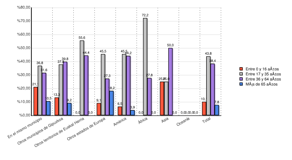 | Otros territorios de Euskal Herria | 0 | 0,0 | 5 | 55,6 | 4 | 44,4 | 0 | 0,0 | 9 | 100,0 |